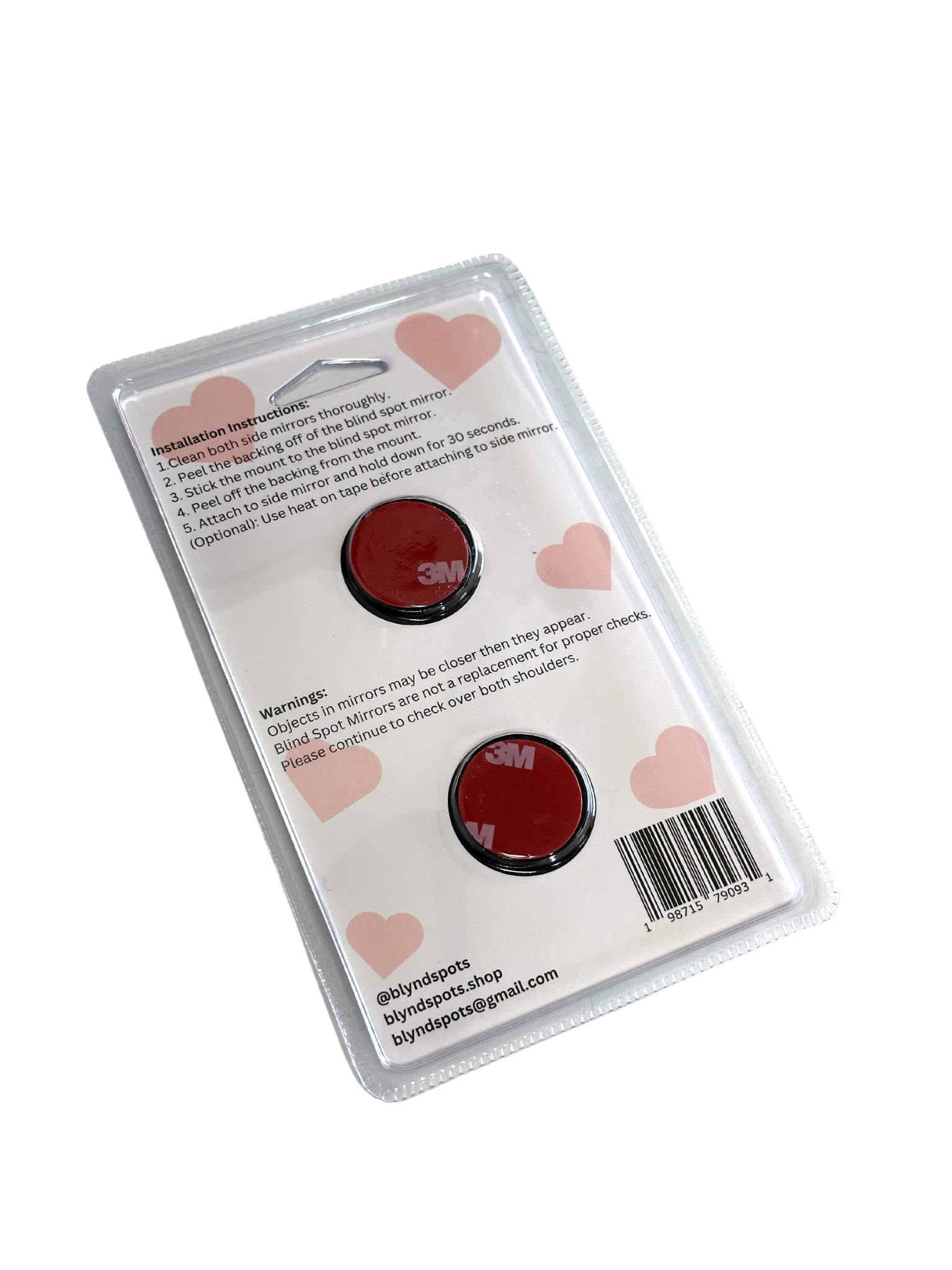 Add safety and style to your vehicle with our Heart-Shaped Blind Spot Mirrors! These unique mirrors provide a wider field of vision, helping you see beyond your car's typical blind spots. The heart-shaped design adds a fun, personal touch while ensuring safer lane changes and turns. Easy to install and compatible with all vehicles, these durable, weatherproof mirrors are perfect for any driver looking to upgrade their visibility with a bit of charm.